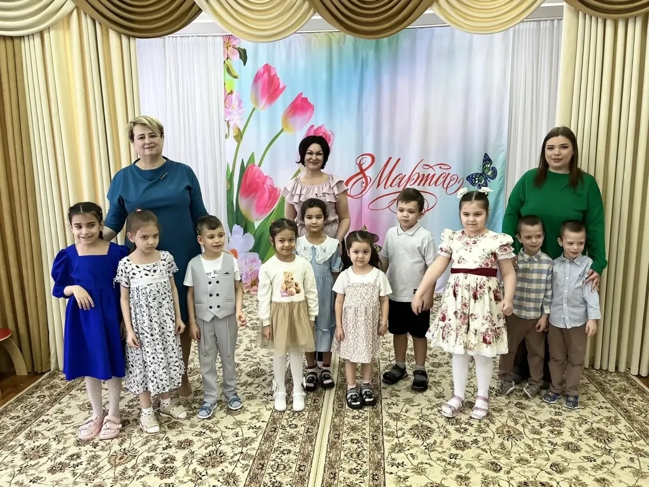 В группах "Одуванчик, "Мишутка", "Цветик-семицветик" прошли праздничные мероприятия, приуроченные 8 Марта. На празднике царила теплая атмосфера. Ребята поздравили мамочек, бабушек и сестричек веселыми песнями, стихами, танцами. Помогали им Мамонтенок, Кошка. Мамы также участвовали в конкурсах, танцевали вместе с ребятами. Подарком для любимых женщин стали открытки, выполненные воспитанниками.