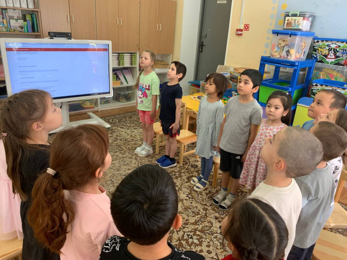 Дети слушают гимн Российской Федерации